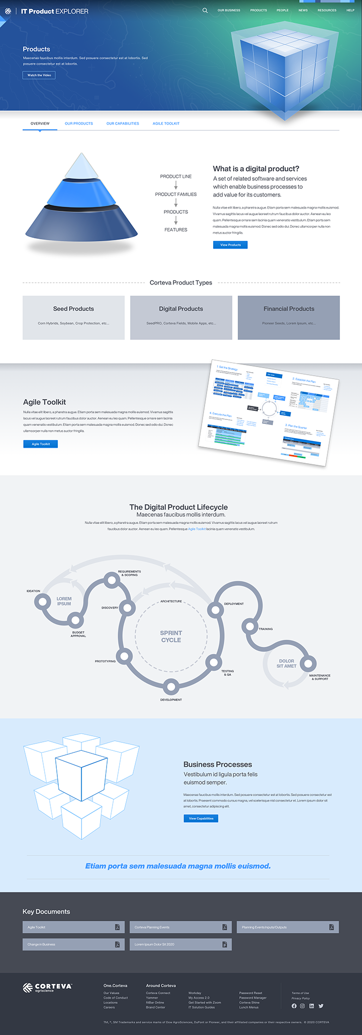 In order to bring the existing products and designs into a common experience, months were spent exploring, researching, and documenting concepts that would define Corteva’s digital presence going forward.