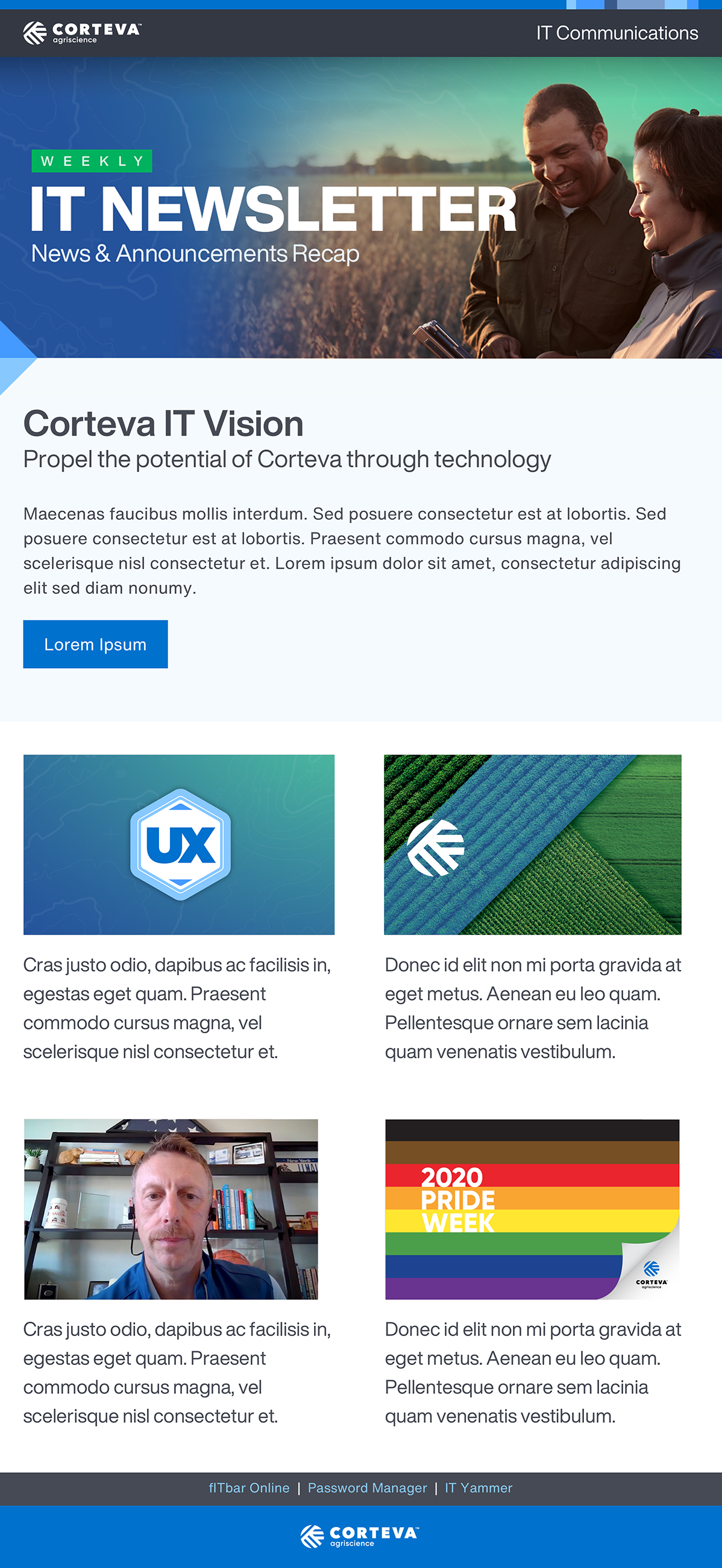 Corteva Agriscience launched as a brand in 2019 as the result of DowDuPont spinning off their agriculture division into a separate company. At launch the brand was defined by only a logo, print colors, stock photos, and a company font. With a portfolio of more than 600 digital products with GUIs, there was an urgent need for an expanded brand design and digital design system that would establish a unified user-centric experience that was uniquely Corteva.